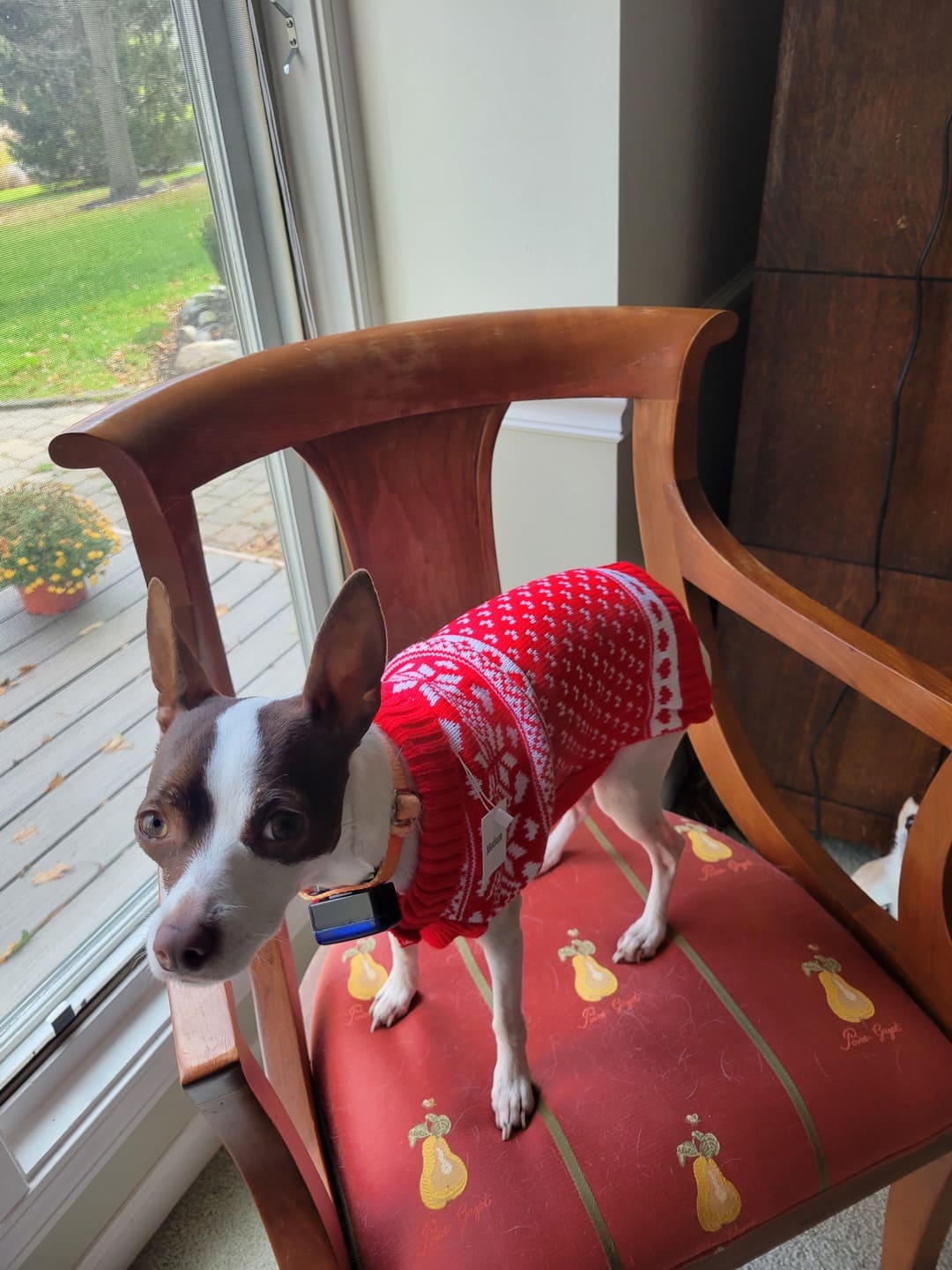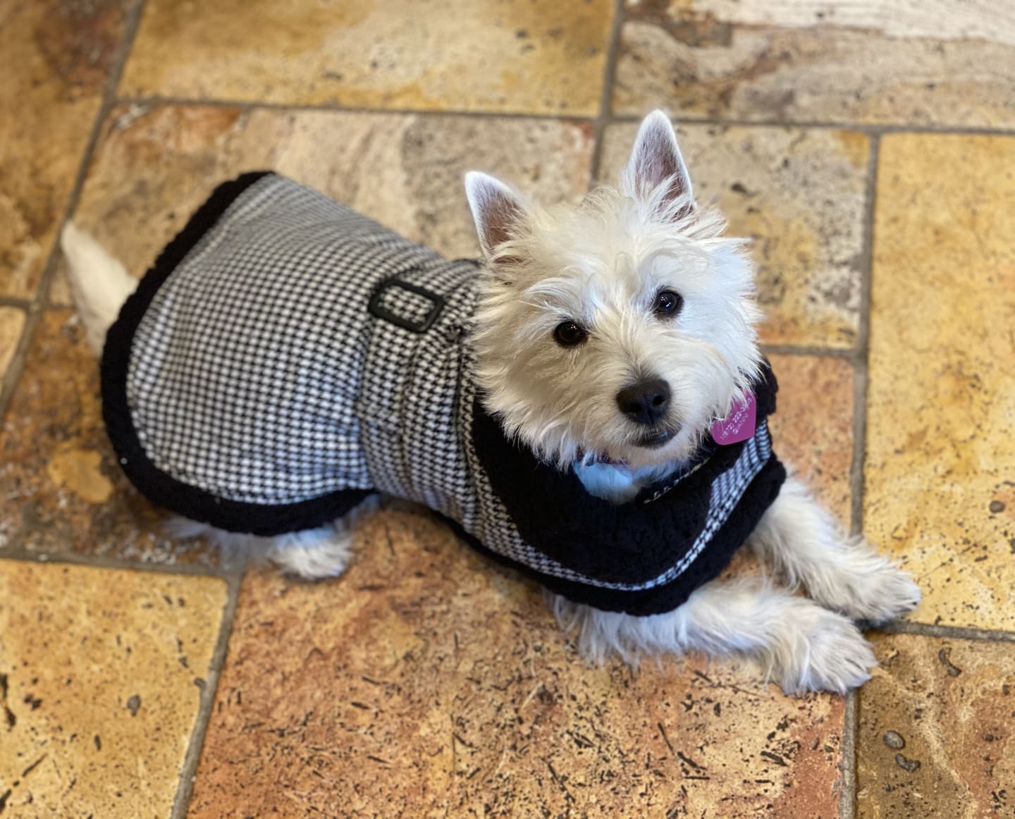 Great quality, fits my small chihuahua and has a nice flounce to it. Live the velcro closure and matching lead.