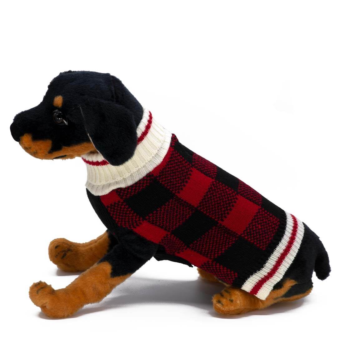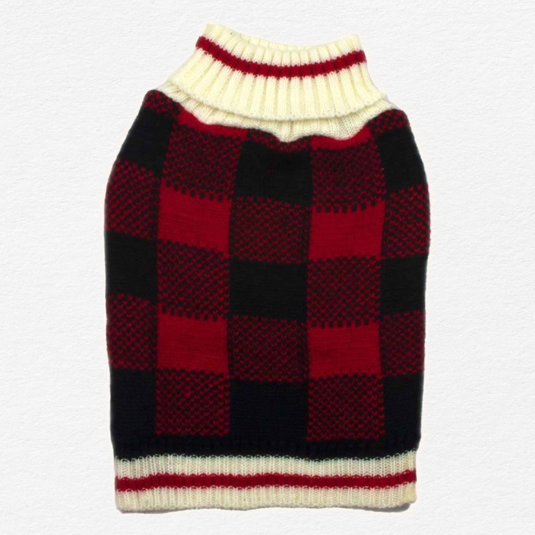 Fashion Pet Red Plaid Dog Sweater in red and black check with stripe accents. These sweaters are full length for a warm and cozy fit. They are strong and comfortable and will keep your dog warm and protected from the outside elements. Perfect for walks in chilly fall and winter weather!