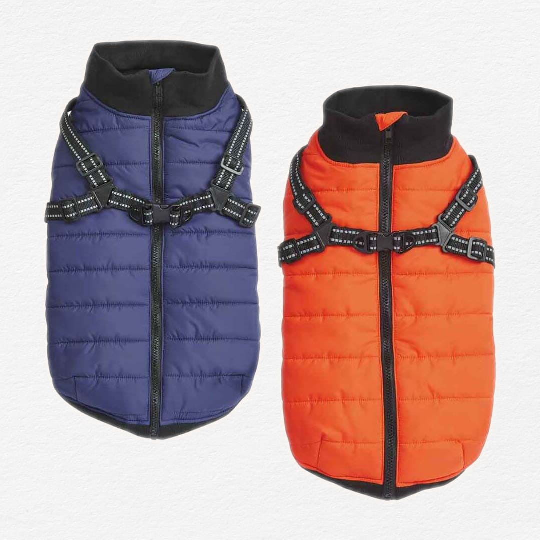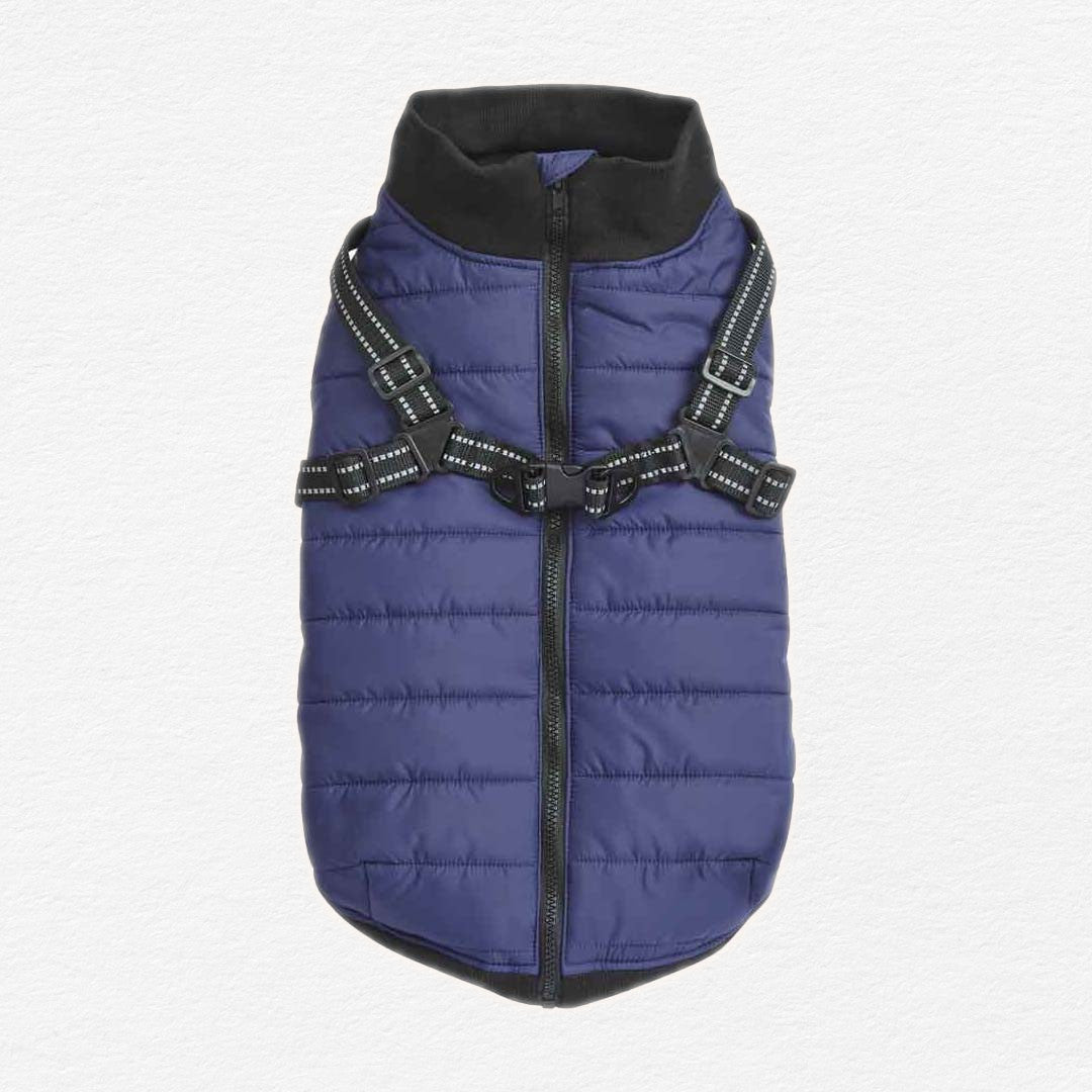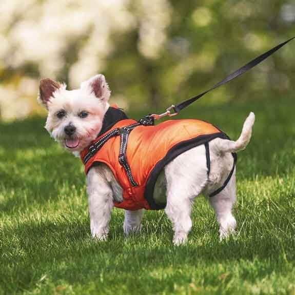 This dog harness coat is as toasty warm as a winter coat but still strong enough to give you control over your dog on walks. A great two-in-one solution that spares you the fuss of getting a harness on over bunched-up dog clothes.