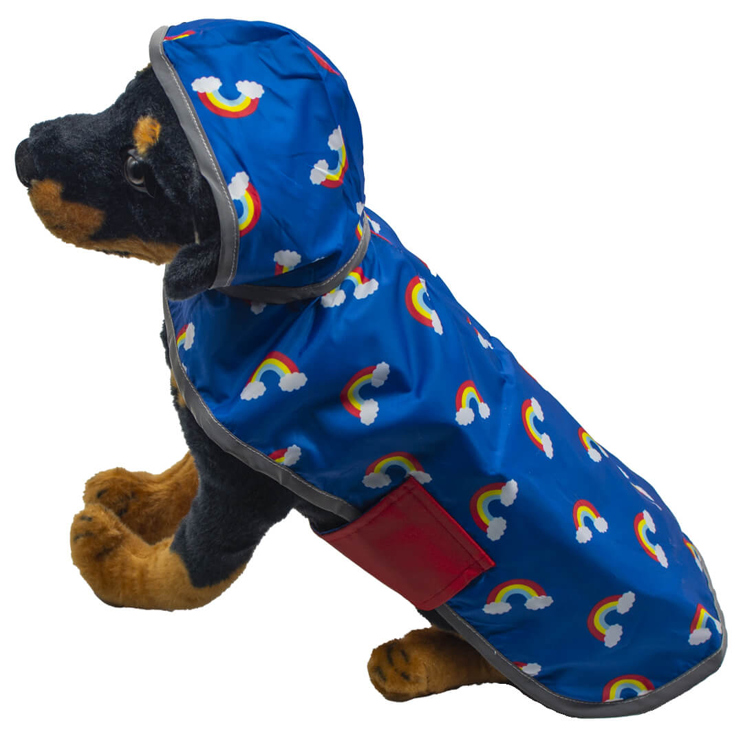 Red and Blue Rainbow Reversible Pocket Dog Raincoat